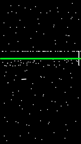 A zöld vonalat én húztam be, azon nyomkodtam végig, de a pontok felette szinte vonalban jelentek meg. Ahol fekete ott semmit nem érzékelt vízszintesen (kb 6mm), a kijelző többi pontja jónak tűnik.