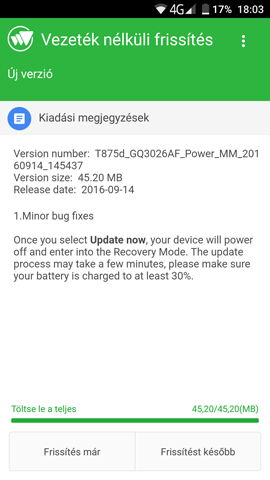 (#1914) zitrone88: Mit ír ki, hány mb a frissítés? Nem gyári recoveryd van? Rootolt a telód?
