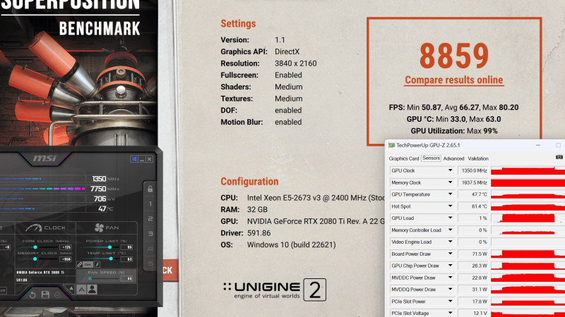 Öreg csataló (2080Ti), nem vén csataló: "...A daliás öszvér 18 038 grafikus pontot produkált a 3DMark Time Spy Extreme mérőalkalmazásban egy ASUS ROG Maximus IX Apex alaplapban 4,2 GHz-en hajtott Intel Core i7-7700K processzor társaságában, ami igen kiemelkedő eredménynek számít egyetlen GPU-val, pláne ha beleszámoljuk, hogy folyékony nitrogénre sem volt szükség hozzá (az egykártyás rekord RTX 2080 Ti-jal 13 888, Titan RTX-szel 9857, RTX 3090-nel pedig 14 490 pont).