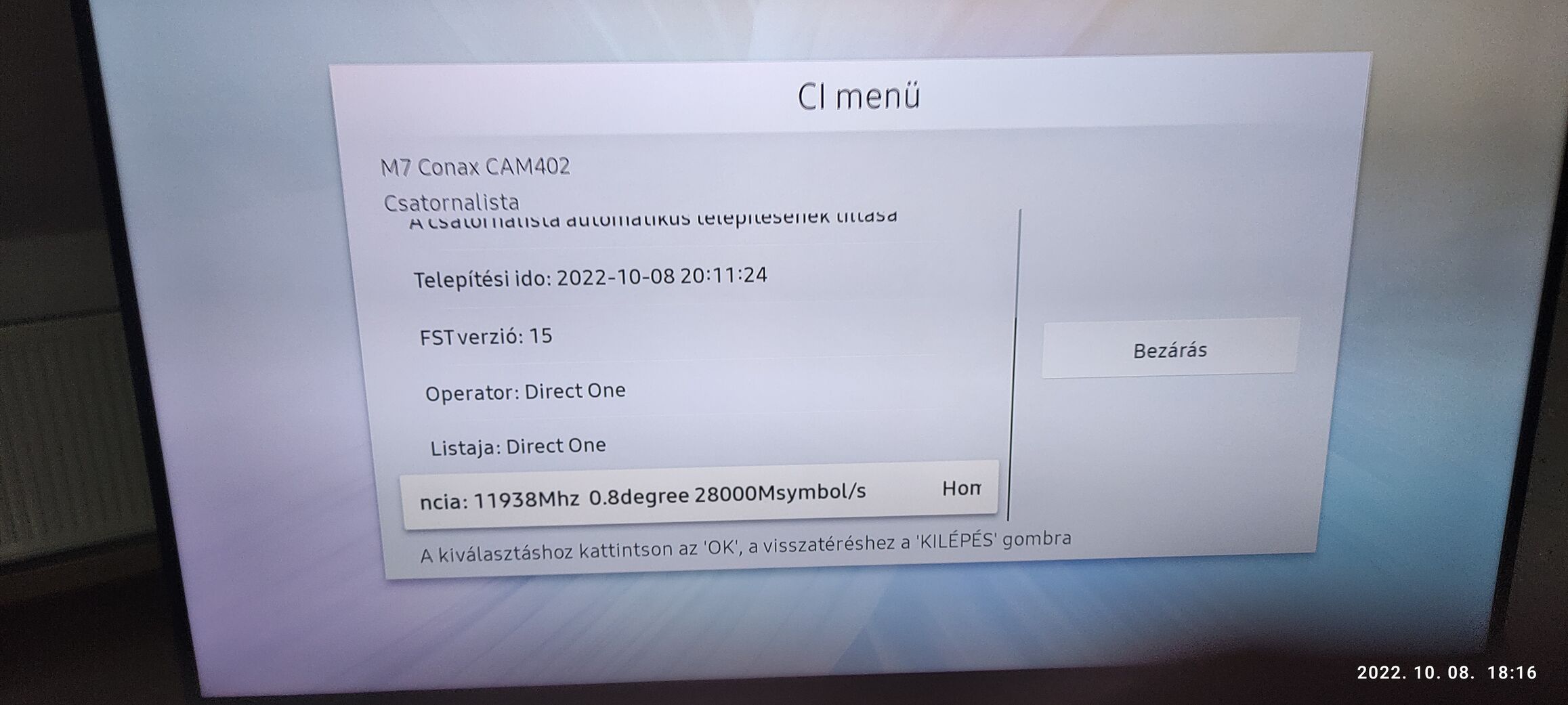 Ezt hol találom?A tv Samsung 55MU6100"A tv menüben milyen infókat ír ki a kártyáról?"