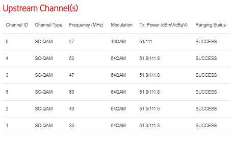 1 59800000 47 5.120 64qam 9 2.0 0 0 1 0 2 46600000 46 5.120 64qam 7 2.0 0 0 0 0 3 40000000 48 5.120 64qam 6 2.0 0 0 0 0 4 33200000 47 5.120 64qam 5 2.0 0 0 0 0
