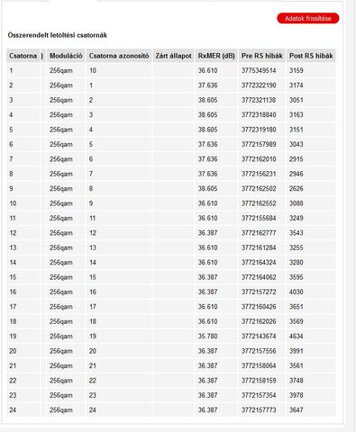 Modem értékek rendben vannak. Modem és router áramtalanítás után nem javul a helyzet?