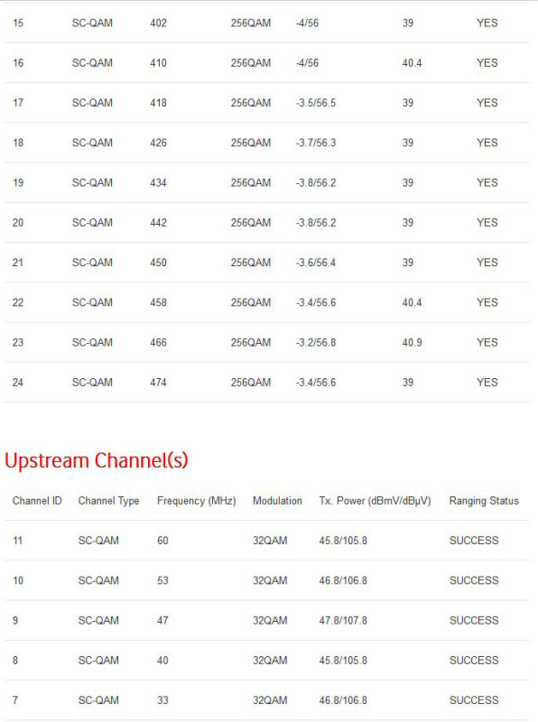 3 SC-QAM 47 64QAM 44.5/104.5 SUCCESS
