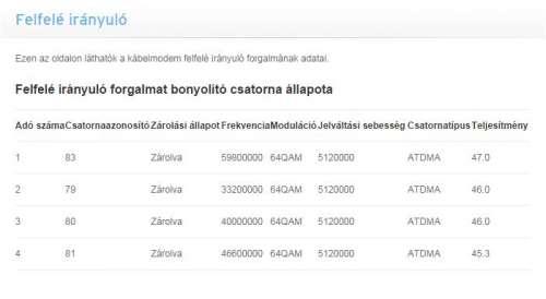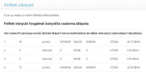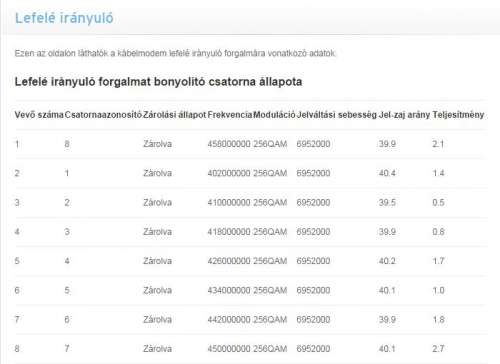 4 9 Zárolva 46600000 64QAM 5120000 ATDMA 40.3Lefelé