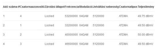 4 27 Locked 52400000 64QAM 5120000 ATDMA 43.00 dBmVSőt, amint látom már több mint 24 freki van....
