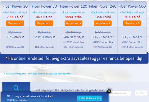 - 1 éve meglévő, budapesti: FP120 + Gold + HD csomag - ePack = 8440 Ft