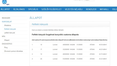 Ez kábelnet, nem optika. Jelszintjeid a modemen megfelelők?