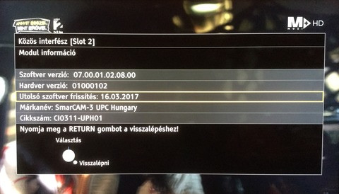 A tévé kiírta, hogy elérhető egy frissítés a modulra, aztán amikor a folytatást választottam, magától átkapcsolt az M4 SD-re (vajon miért pont oda...?), és elindult a letöltés...A letöltés mindkét modulra (mivel duplatuneres, dupla modulos a tévé) kb. 1-1 perc alatt lezajlott, azóta ezek az infók vannak a CI-menü alatt a modul információnál (az "utolsó szoftver frissítés"-nél pl. eddig nem volt semmi):