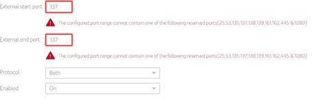 Kábelmodemünk adminisztrációs felületén, amennyiben tiltott portot kísérel meg megadni, a felület felhívja a figyelmét arra, hogy az adott port nem használható. A felület által adott információ aktuális, és releváns.Tájékoztatjuk, hogy jelen levelünkkel bejelentését lezártnak tekintjük."