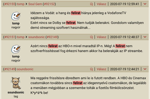 Az ellenkezőjéről pedig – vagyis arról, hogy OTT-n működik már a felirat pl. az HBO2-3 és a Cinemax csatornákon is – azóta sem írt itt senki. Ezért kérdeztem rá. De szerintem azt már az előző hsz-omban is igazoltam, hogy nem az ujjamból szoptam ezt. -