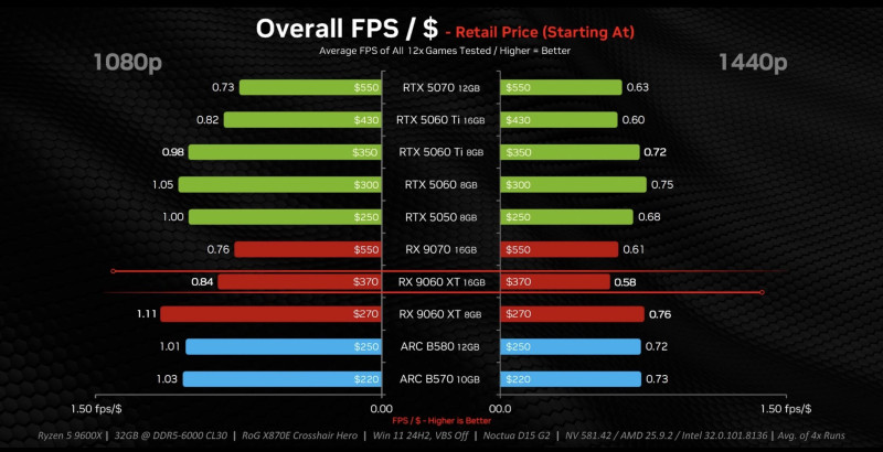 Olvasva a nagyvilág híreit,ami nem éppen fényes és pozitív,éltünk már szebb éveket is meg évtizedeket is de ez most egy ilyen korszak a történelem során...nah de térjünk a tárgyra,Melyik éri meg ár/érték arányban egy 5060Ti vagy 5070? FHD.FPS hajkurászás nem lényeg,csak nagy átlagban lenne fontos.Egyszerűsítve 1Ft/1FPS arány.(Az ár most nekem mindegy,csak a kifizetett összegér mit kap az ember.)