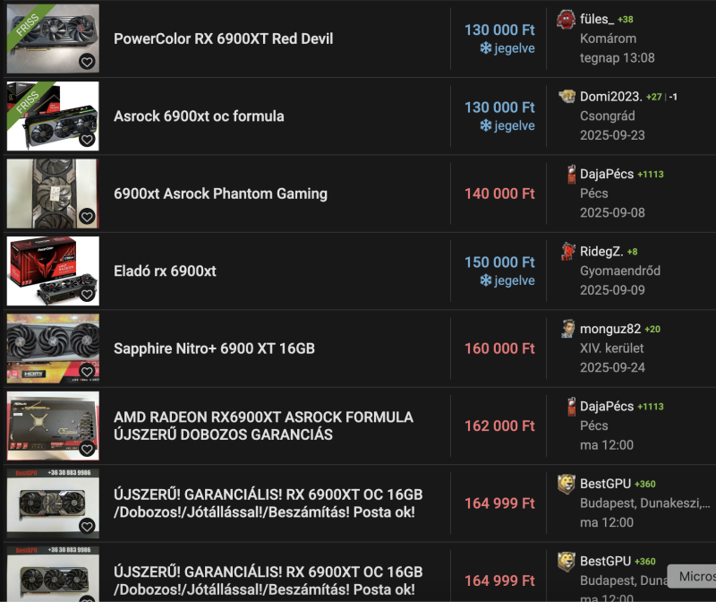 ha mondjuk fél éven belül elhal az új tulajnál akkor hozzád menjen reklamálni?én inkább új garis 16gb-os 9060 xt-t vettem 1440p monitorhoz 20%-al drágábban mint amennyiért most vannak fent a 6900xt