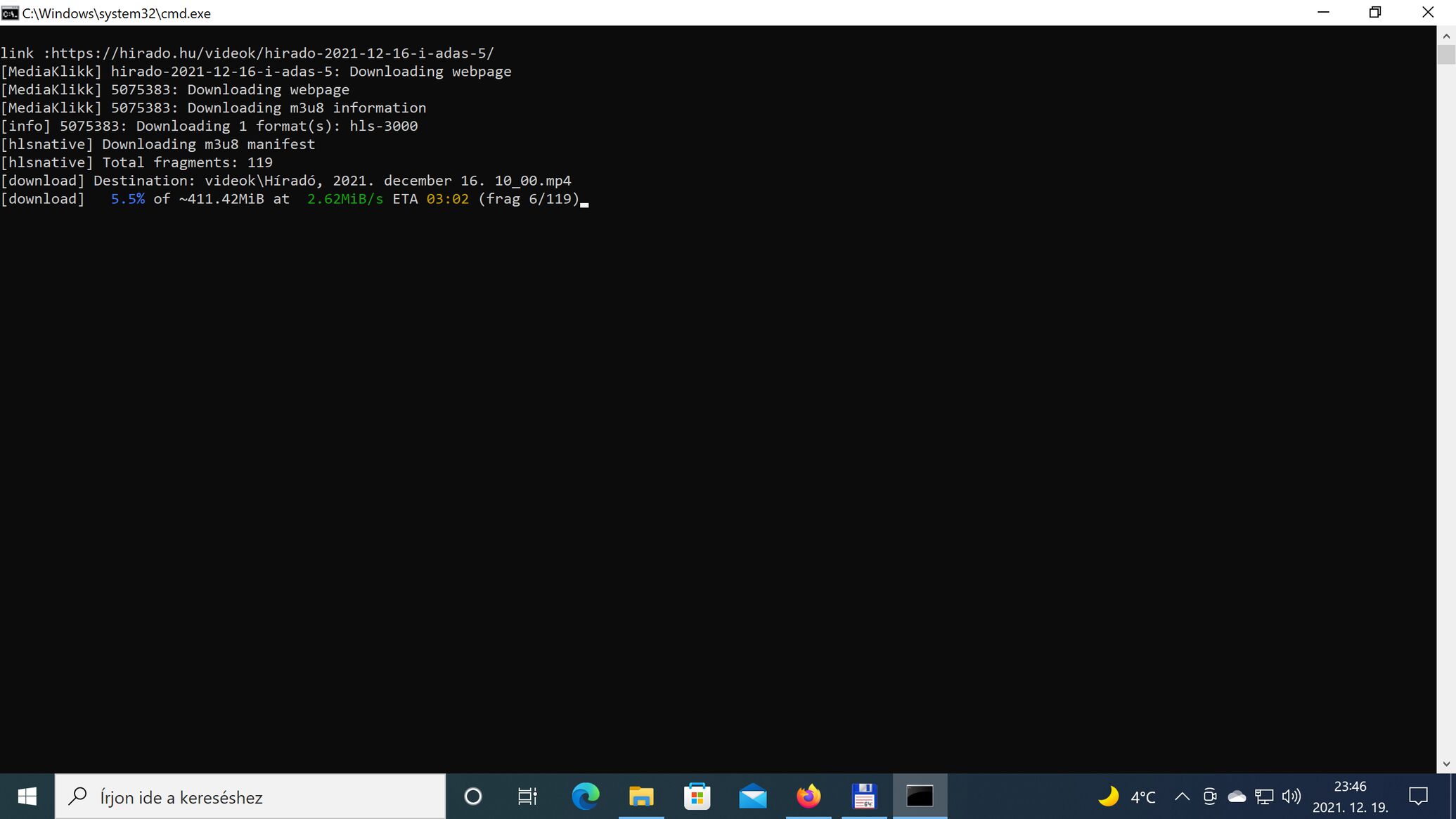 A bat.fájlt létrehoztam,de ez az automatikus linkkérés nem megy.Viszont ezzel a mediaklikk.hu letöltés nekem nem működik.