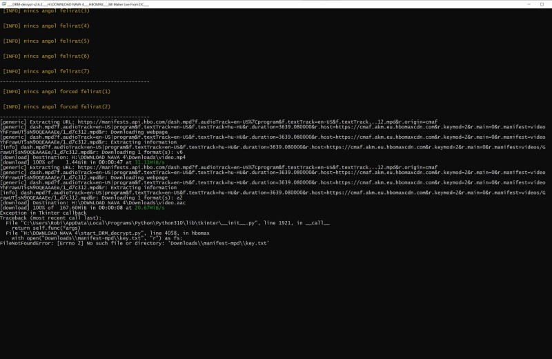 Most jobb, mert a listát elkészíti, de valami miatt letöltés helyett ezt a hibát adja:____DRM-decrypt v2.6.2____C:\Users\68120\Downloads\DRM-decrypt v2.6.2_v1 2____
