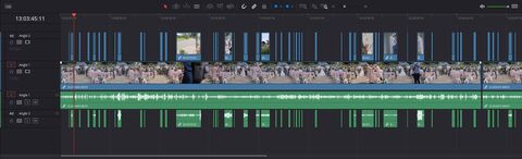 Viszont most Resolve alatt meg úgy tűnik, hogy délutánra már azért észrevehetően csúszik a kettő egymáshoz képest, szóval itt már kénytelen voltam waveform-ra szinkronizálni TC helyett. A déli ceremónia még jól néz ki, szóval ha in-cam TC-t használ az ember, akkor a legjobb ha minden alkalom előtt újraszinkronizál és akkor az úgy szupi egy-két óráig. Utána már több tizedmásodperces drift lehet.Viszont ha meg nem ugyanazt a hangot veszi a két kamera, akkor meg csak TC van, waveform nem lesz jó. Szóval jah, plusz egy dolog amire oda kell figyelni a felvétel indítása előtt.