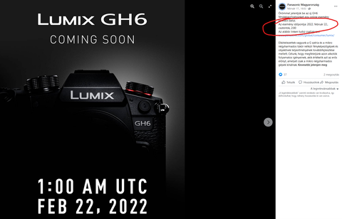 Ma jön a GH6, német ár már kiszivárgott, 2500EUR: [link]