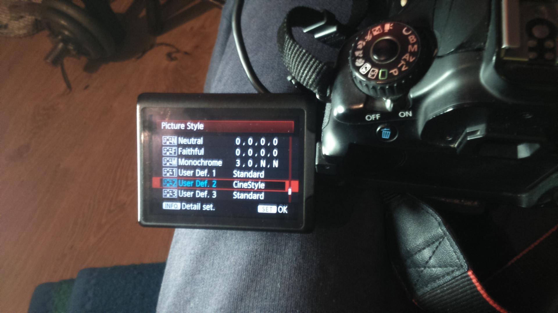 De ha már neked is rajta van a CineStyle, akkor meg kell jelennie... Menj be videó módban a menübe, arra a lapra ahol a képstílusok vannak, azon belül pedig a Saját beállítás 1-be mondjuk (550D-n a Disp. gomb) Ezen belül az első rublikában ki tudod választani, hogy a Saját beállítás 1. milyen profilt használjon, itt a felsorolásban ott kell lennie a CineStyle-nak is.