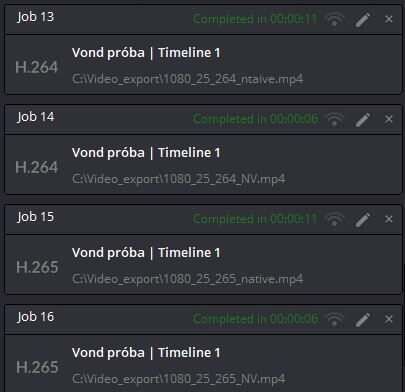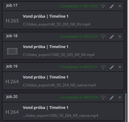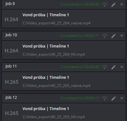Minap exportáltam egy 9:09 hosszú videót. Túlnyomó részben 4K 25fps + 1080p 100fps b-roll benne pár. Ezt 1080p-re exportáltam ki h264 12Mbit/s -re. Semmi extra csak vágva volt, meg pár transition.