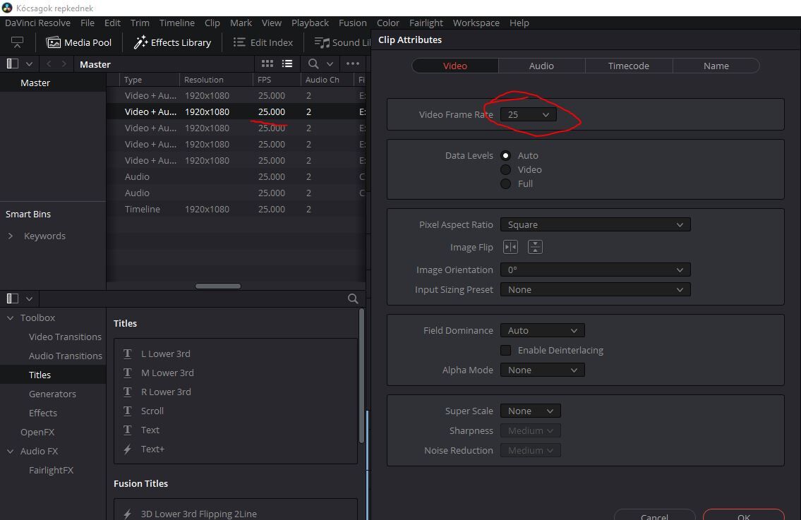 Itt simán megadhatod akár a 60fps clipnek, hogy 24 vagy 23,976 legyen, és ahhoz mérten változik majd a hossza frame darabszám és az fps alapján. -