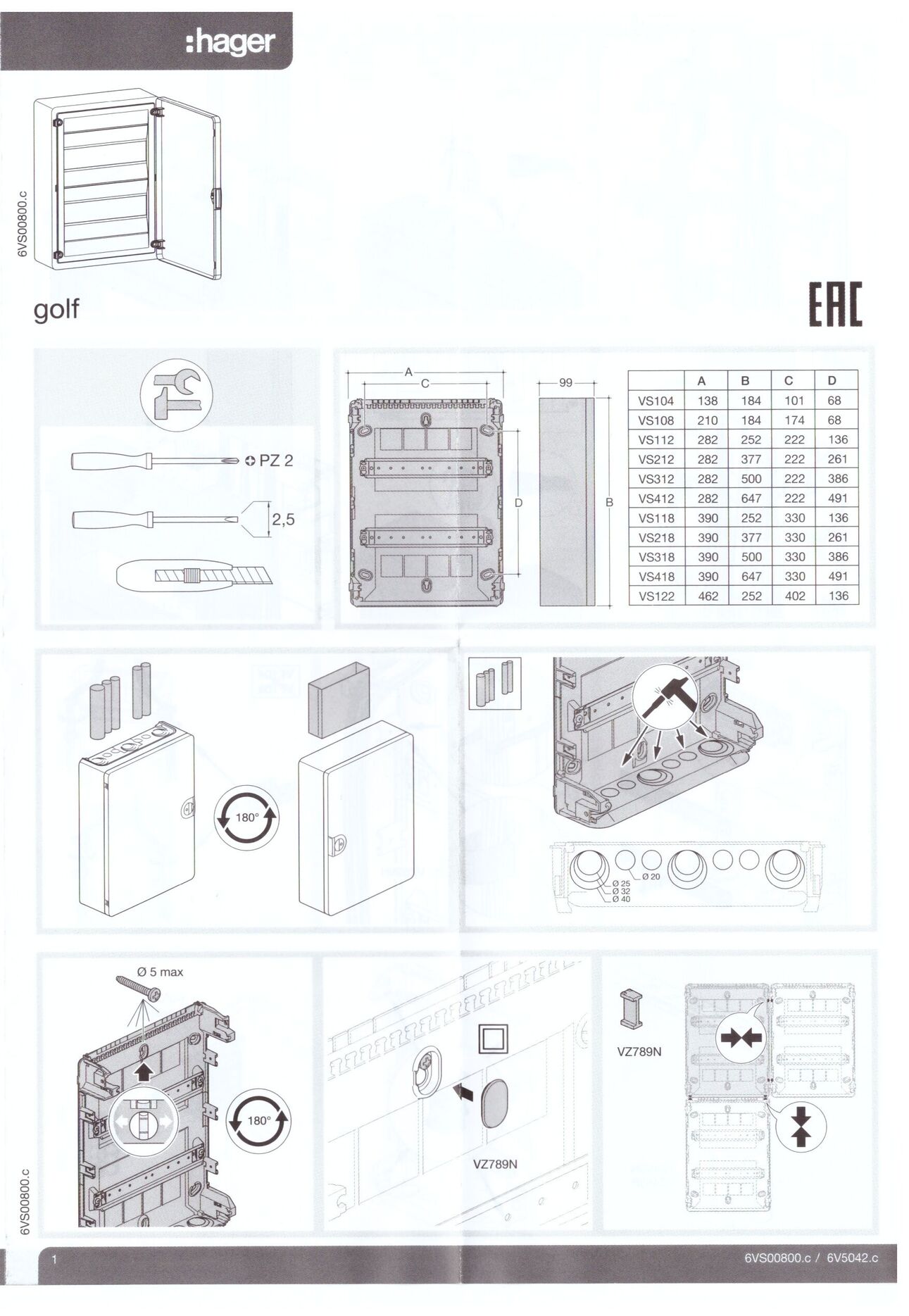 Vettem egy Hager Golf VS212TD kiselosztót, amibe szerelem majd az új hálózatot [PDF].