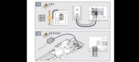 Az 5-ös, 20-as dugasz hellyel oldottam meg a tápot, illetve az alábbi képen a hivatalos garázs automatika leírás alapján, a 11-es ábrán szereplő +ba az NO-t, -ba a C-t kell kötni. -