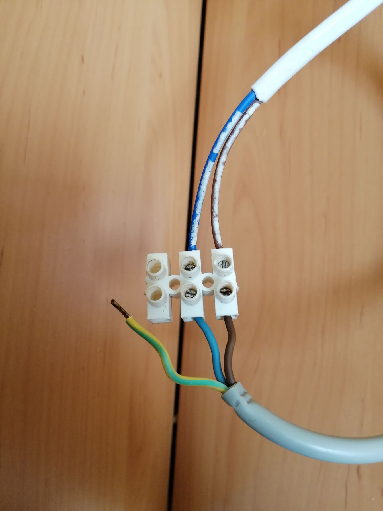 A páraelszívót dugvilla nélkül adták, így annak a konnektorhoz csatlakoztatását nekem kell megoldanom. A Cata-nak van egy barna és kék vezetéke, a régi páraelszívóból megmaradt kábel esetén viszont van egy sárga/zöld is.