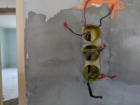 Az alsó dugaljnál pedig a piros szalagos földet a dugalj földjébe és innen bekötném egy 3-as wago-ba, hogy a másik két földet is beköthessem. A nulla és a fázis mehet sorolva.