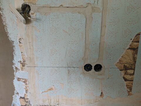 Az óra pont a nappali bejárata fölött van, és tőle balra is, jobbra is van egy-egy süllyesztett szerelvénydoboz. Ugye én csak a dobozfedőket látom, mivel szépen le vannak festve, így nem tudom felfeszegetni, hogy megnézzem, milyen magasságban futhat a horony.