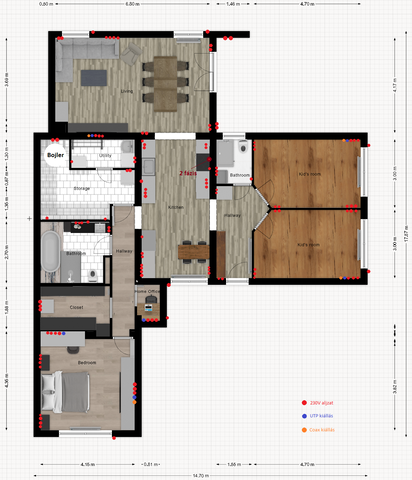 Köszönöm a válaszokat. Szóbeli ajánlat volt csak, azt mondta neki ez a standard díja 1300ft/kapcsoló,aljzatig. Schneider asfora szerelvényeket szeretnénk. Itt egy alaprajz a szerelvényekről (kapcsolók és lámpák nélkül) Valószínüleg még egy villanyszerelőt hívok majd a miheztartás végett.