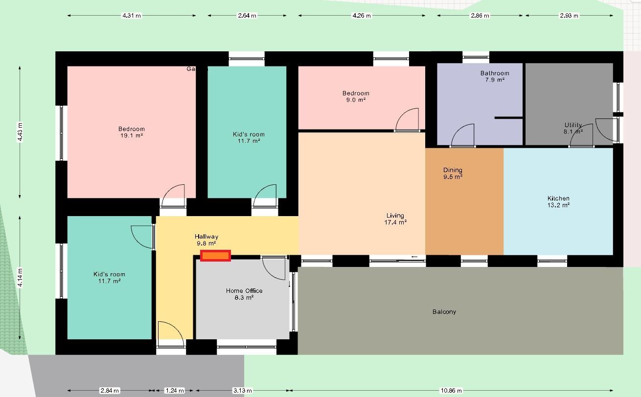 Egy 120 m2-es házat újítunk. 3x25A (17,25kVA) lesz a bejövő. 8 helyiség van és lesz vagy 20 áramkör. Csatolok egy alaprajzot. Bejelöltem a lakáselosztó helyét, onnan fog szerteágazni, aljzatba fektetett Symalen csövekben. Elektromos fűtőkábelek is külön körön lesznek, helyiségenkénti vezérléssel. A kérdésem, hogy szerintetek mennyi vezetéket vegyek?