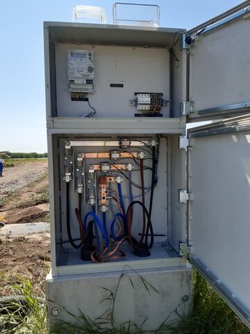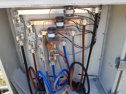 A szekrényt,kábelokat oartner rakja le,mi csak az áromváltókat rakjuk fel meg a mérőt és ellenőrizzük a bekötéseket.