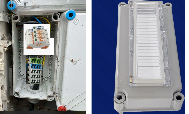 Nagyon béna ez... teli szürke előlapja van ennek az elosztónak... mégha el is férne a túlfesz levezető ode nem célszerű nem? Vagy lehet ide átlátszó ajtós fedelet venni?