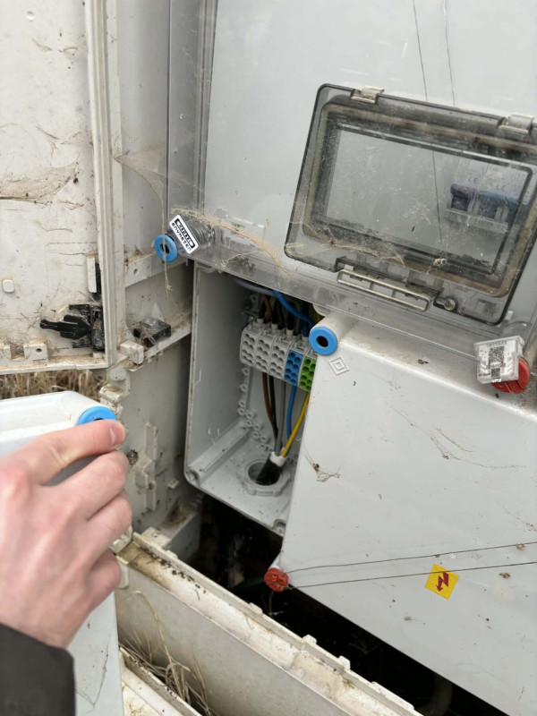 Helyi villanyász végezte, mint kiderült nem a precizitásáról híres illető (sajnos). Ez éppen egy szebbik hibázása...