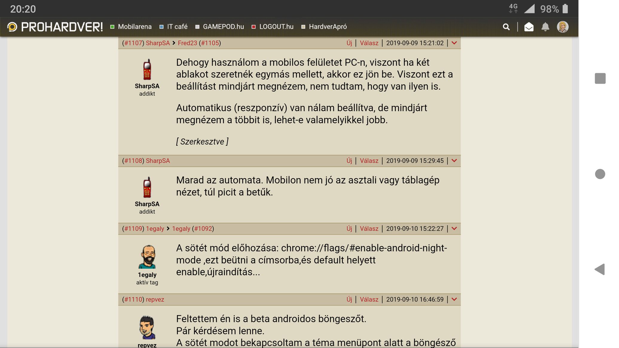 Elhiszem, de állatira furcsa számomra, hogy valaki PC-n is mobilos nézetet használ időnként. Én még sosem láttam a csillagos-buborékos verziót PC-n, de mondjuk nem is szeretném.