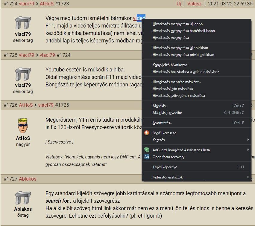 DARK módnak pedig nagy szar a megvalósítása. Asztali gépen nem használom, de mobilon több alkalommal vissza kell váltsak normál megjelenítésre, mert sötét módban egyes weboldalakon éppen nem látható/értelmezhető részek vannak