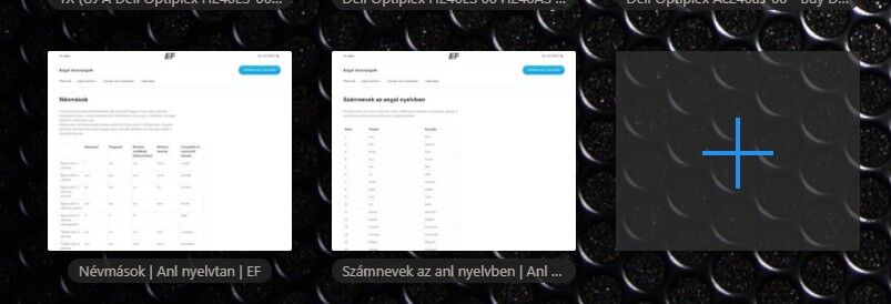 Most gondoltam áthelyezem a próba lapcsoportot új ablakba és azt mentem kompletten nem csak néhány kijelölt lapot, erre az áthelyezés menüben azt írja a munkamenet megnyitásával nyitott ablakra, hogy Ablak x aktív lappal. Újra ránéztem, de csak az előbb is tapasztalt egyetlen gyorshívó van nyitva, viszont, ha a kurzort a gyorshívó fülre viszem, akkor függőlegesen miniatűrökkel hozza az elvileg elmentett visszanyitott lapokat, de sajnos ha lehúzom az egeret, akkor eltűnnek a miniatűrök