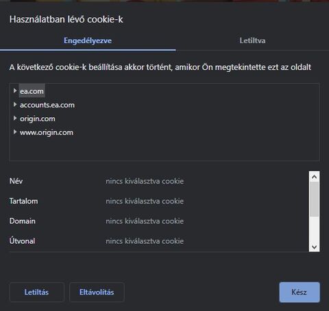 Hozzáadtam a kivételekhez a hiányzókat (accounts.ea.com és www.origin.com) és így a "Harmadik féltől származó cookie-k letiltása"-val is be vagyok jelentkezve.