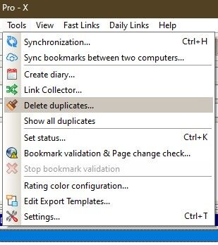Tud keresni duplikátumokat és ellenőrizni a mentett linkek működését (Bookmark validation & Page change check) pl. kijelölt mappán (alul kék sáv)
