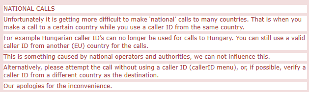 Nagymama panaszkodott, hogy ha mobilt hív otthonról, akkor mindenféle egzotikus számot jelez ki a hívott félnél, még véletlenül sem a saját vezetékes számát. PBXes.org-on keresztül van egy freevoipdeal account rákötve. A kimenő hívószám verified, és +361 1234567 formában van megadva. Nem tudom, mikor romlott el, de azóta random EU-s hívószámokat használ, ha kimenő hívás van.