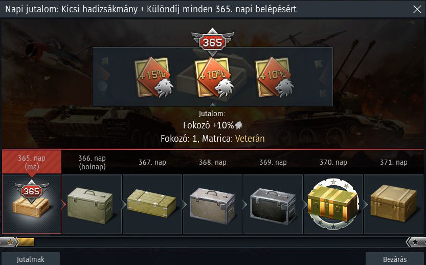 Sikerült 75% alá leküzdenem magam és egyszer csak hirtelen "megjavult" a játék. Nem vagyok "egylövéses", a csapat is ontja a győzelmeket. (Mondjuk most meg a ló másik oldala: 10 győzelemre jut két vereség). Úgy látszik néha be kell menni tartalékos tankokkal, hagyni kell, hogy szétlőjjék, pár utolsó hely hamar "rendbehozza" a statisztikát.