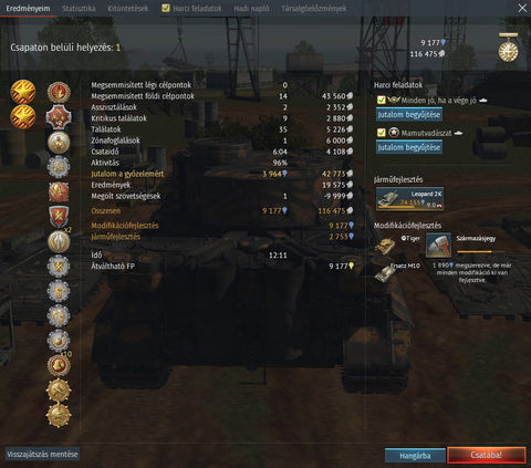 Mondjuk ehhez tartozik 49 kilövés és 19 halál. A tank nem annyira rossz, csak valamiért többnyire abba a csapatba sorol, amit pár perc alatt lerohannak, kivégeznek. Plusz ebben benne van az is, hogy összesen 32.000 ezüstoroszlánom maradt, és ilyenkor fosik az ember, hogy kilövik a több mint 12.000-es javítási költségű M1-ét és ettől hülyén kezd játszani.