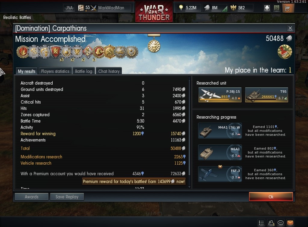 Akkor szerezd meg gyors az M6A1-et az 4.7 RB-ben nagyon jól profitál, ha nem dobál fel és tudsz játszani.