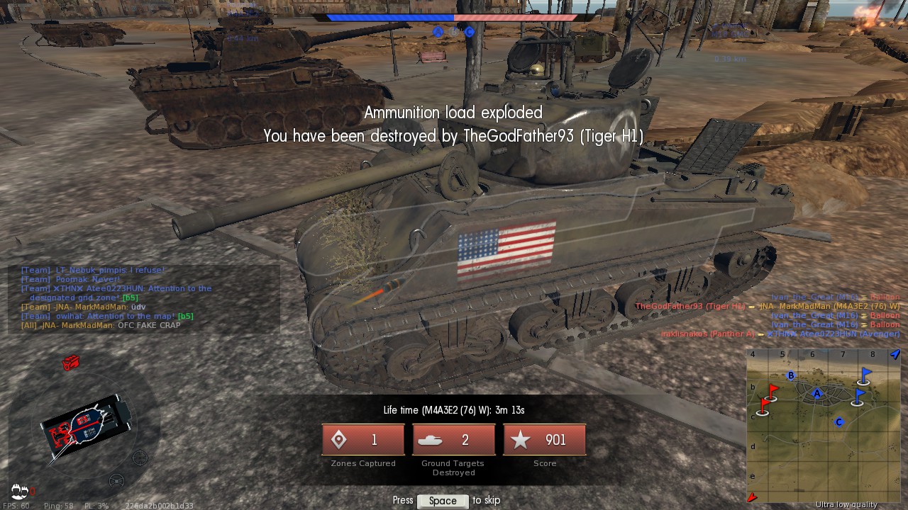 -Azt is javítsák már ki, hogy eltalálják a motoromat (engine), akkor instakill és kiírja: TANK BURNT DOWN! - Anyád!