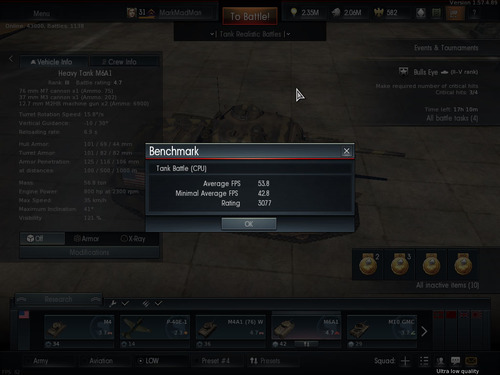 Performance testsVsync is OFF; Resolution 1920x1080-FHD "Full HD"; 64-bit client; Tank Battle (CPU);