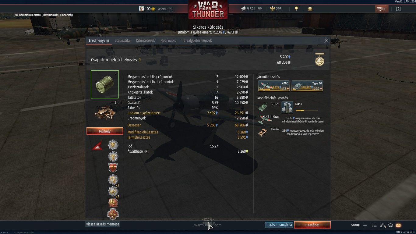Itt tartok most pár csatával stock repülővel tank reálban fejlesztettem..de Pénteken már az egész ág kész lesz, csak hogy mutassam mennyit ér ha "prémezel" persze ez nem azért csinálom hogy rávegyelek a prémium előfizetésre, csupán csak az érdekesség kedvéért..