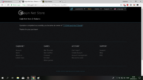 Sosem panaszkodom ingyen dolgok miatt, de azért megjegyezném hogy az elmúlt 3 és fél évben mindenben kivettem a részem amit Gaijin elénk rakott, minden event, minden eseményen részt vettem, teljesítettem(E-100 kivételével) de soha nem kaptam egy értelmes ládát, csak fokozó,lowtier camuflage, töménytelen mennyiségű back-up(kb 500db) és "Parancsok" amiből szintén van összesen 200 db, de amikor nézegetem a Wt fórumát, tele van képekkel hogy egyik nap ilyen T4-es talizmán, ilyen 75%-os kedvezmény stb... hangsúlyozom soha nem érdekelt hogy más mit kap, se a játékban,se a magánéletben, csak már kurvára idegesítő hogy a mostani eventen is duálban csinálom a tankos és a repülős részét, plusz az egyéni feladatokat is figyelem,és csinálom, de 20 ládából semmi mást nem kaptam csak back up-ot, 3 és fél évem alatt 1x kaptam egy Talizmánt azt is a Zis-30-ra...