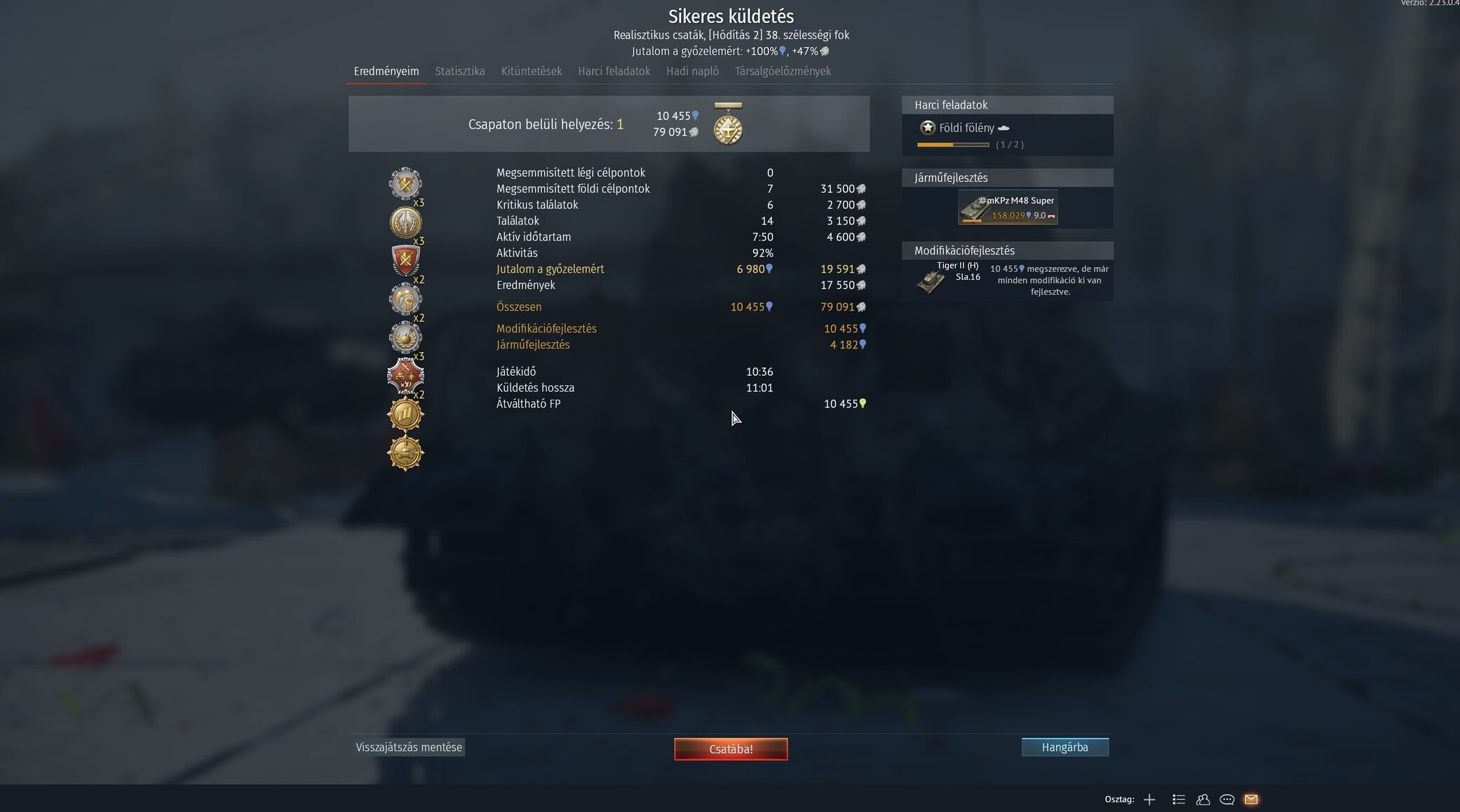 Francia91 - nek sajnos abban igaza van, hogy top tier - be nem nagyon rak a játék, sok meccs után a csata végi összegzőben ott a "pirosollós" jelvény, miszerint 1-2 tier - rel nagyobb ellenfelet lőttem ki