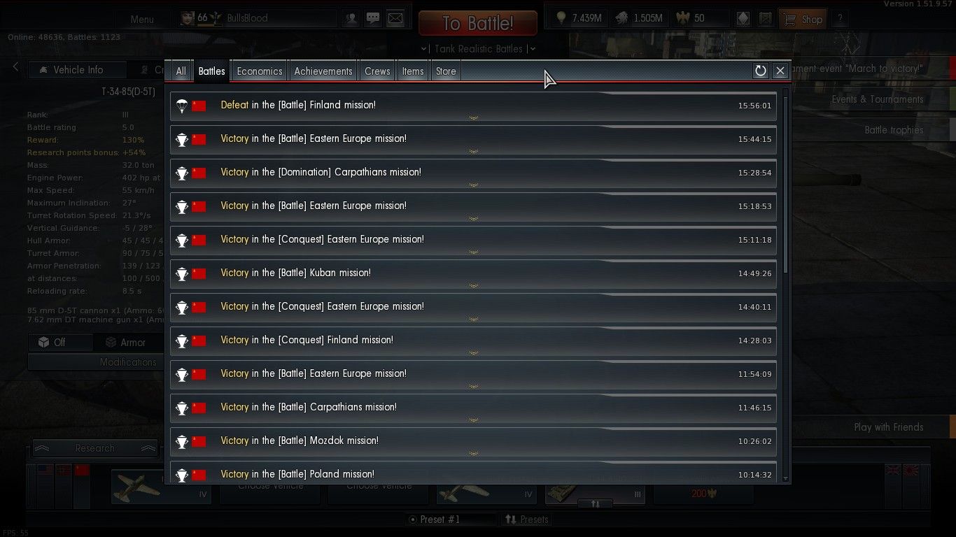 T-34-1941-el és t-34-57(?)-el mentem most sokat, kb. 50/5 lett a győzelem/vereség arány. Majdnem mindent megnyerünk, pályától, ellenféltől függetlenül. Minden ellenfél 1 lövés, mindenhová előbb érünk oda, pár perc és már a spawn point-on vagyunk. Dög unalom az egész. Ez tényleg jó így?
