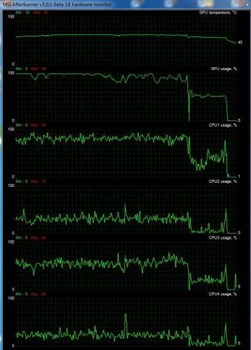 A durva az a WoT-ban, hogy van olyan pálya még mindig ahol 100%-on az első mag, a GPU meg alig 40-45%-on, mindez 30fps mellett. Amit előbb kitettem még egy jó esetnek mondható, 70-80% GPU kihasználtággal kb. 40-50fps-el