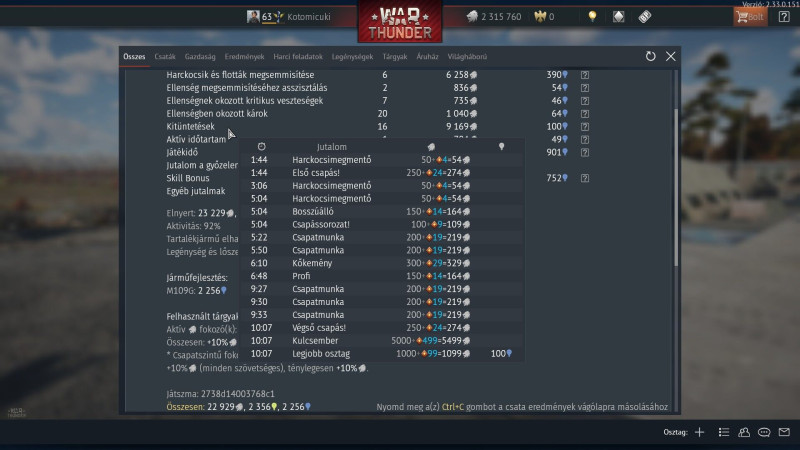 - a járművek BR meghatározása gyakran egy viccNem mondom, ha sikerül egy-egy jobb kilövési pozícióban megkapaszkodni, akkor jön néhány skalp - vagy bosszankodás, hogy még így, oldalról sem... - , de állandó low-tier-ként nagyon kétséges élményt nyújt, még alacsonyabb BR esetén is a csatánként változó "véletlen-generátor" miatt.